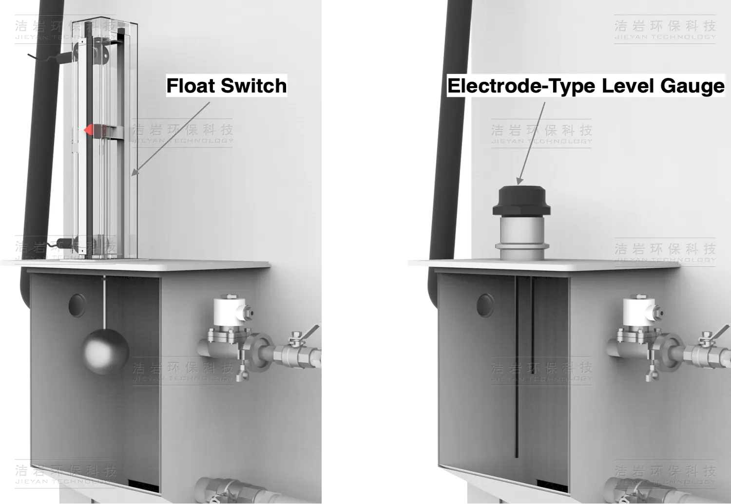 Compatible with both electrode and float-type sensors, the system features interlocking controls for automatic water replenishment and dry-run protection. The float sensor operates without liquid contact, resisting scale formation and chemical corrosion for long-term, maintenance-free operation.