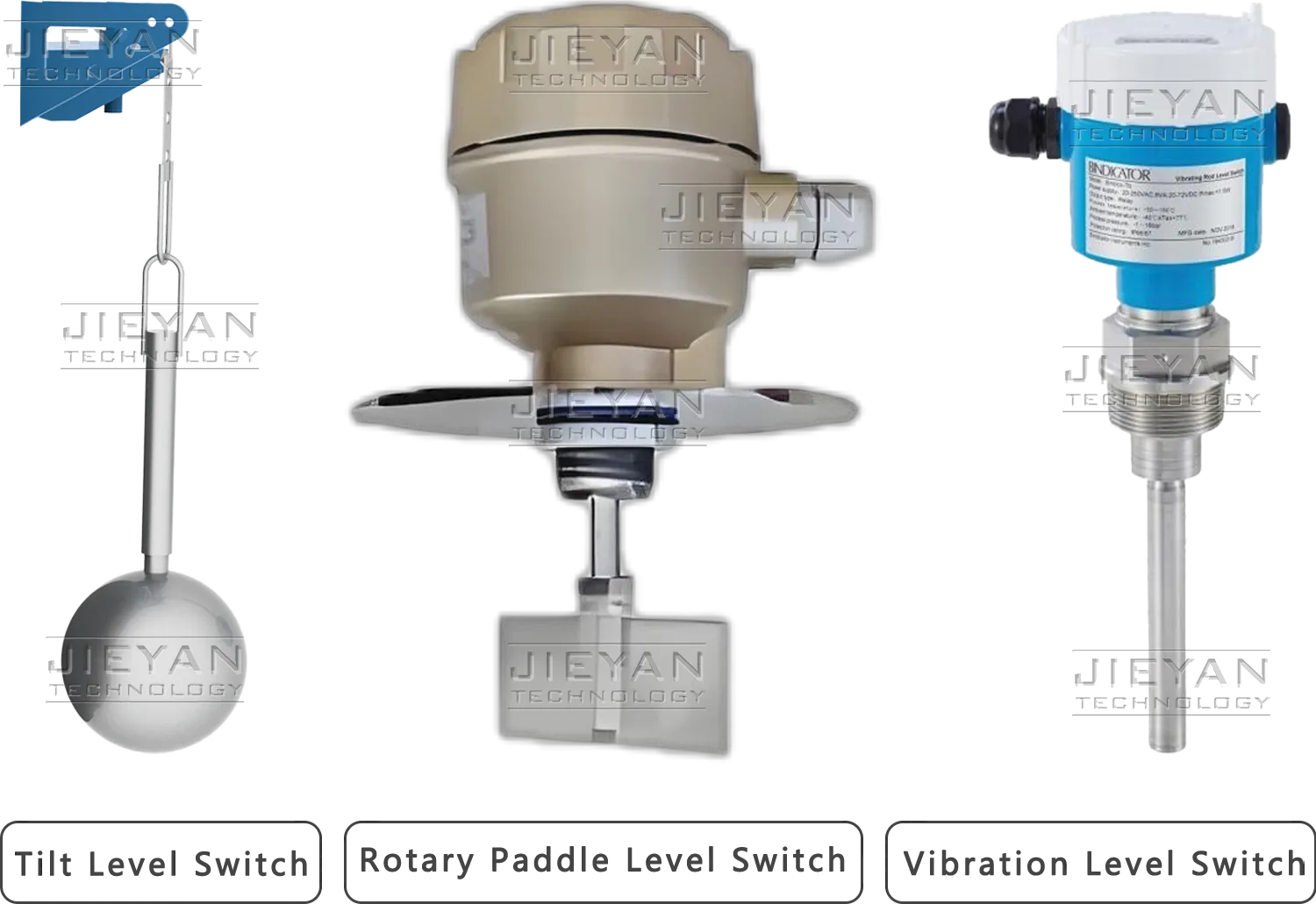 Multiple level switch options including rotary paddle, vibration and differential pressure types provide accurate monitoring for various materials and installation needs.