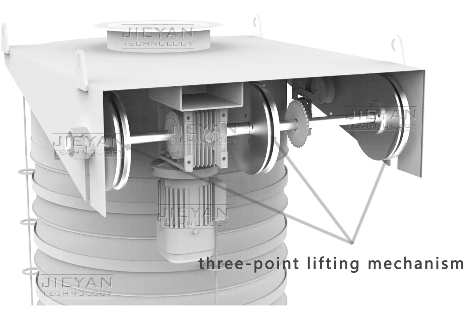 The three-rope winch system with triple lifting points ensures exceptionally smooth and stable operation. Combined with a K-series gear motor delivering over 96% efficiency and superior overload capacity, it's engineered for the toughest heavy-duty applications.