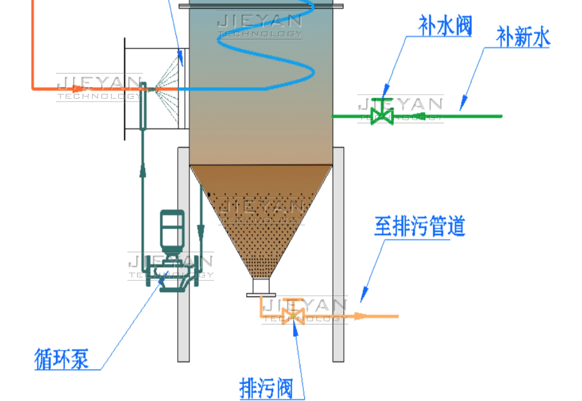 The MDC-V vertical dust collector adopts high-efficiency cyclone separation and two-stage cyclone dehazing technology to achieve deep gas-liquid separation. The top mounted structure of the fan is highly compact, significantly saving space. The integrated sewage sedimentation circulation system and intelligent sewage discharge function, combined with large aperture non clogging spray and reliable liquid level monitoring, ensure efficient dust removal, low maintenance, and stable operation, making it an ideal choice for high space utilization requirements.