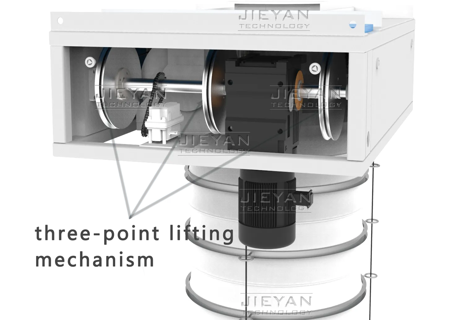 Our triple-rope winch system ensures exceptional stability during operation with its three lifting points. Paired with a high-torque K-series gearbox delivering over 96% efficiency and superior overload capacity, it's engineered for the most demanding heavy-duty applications.